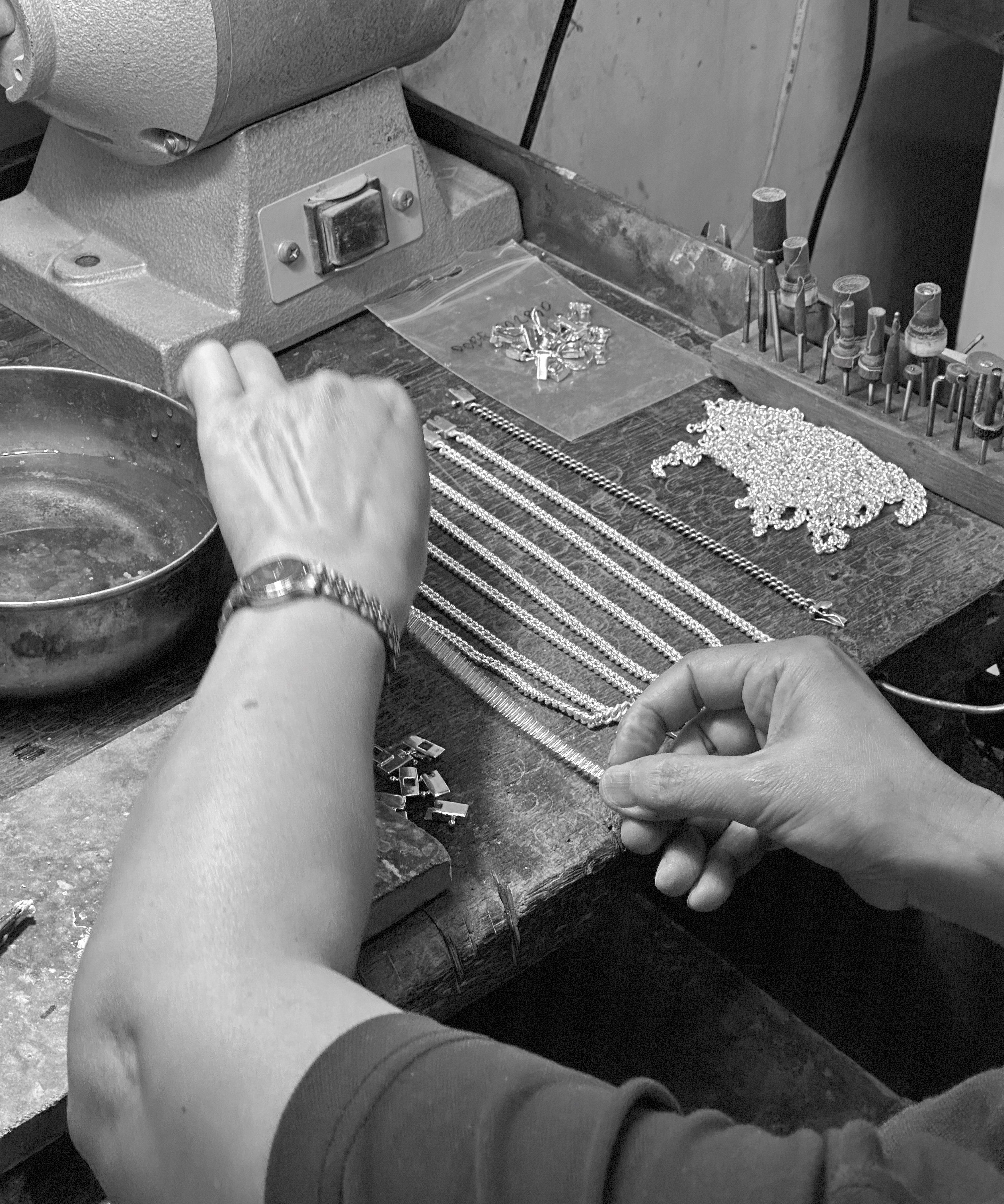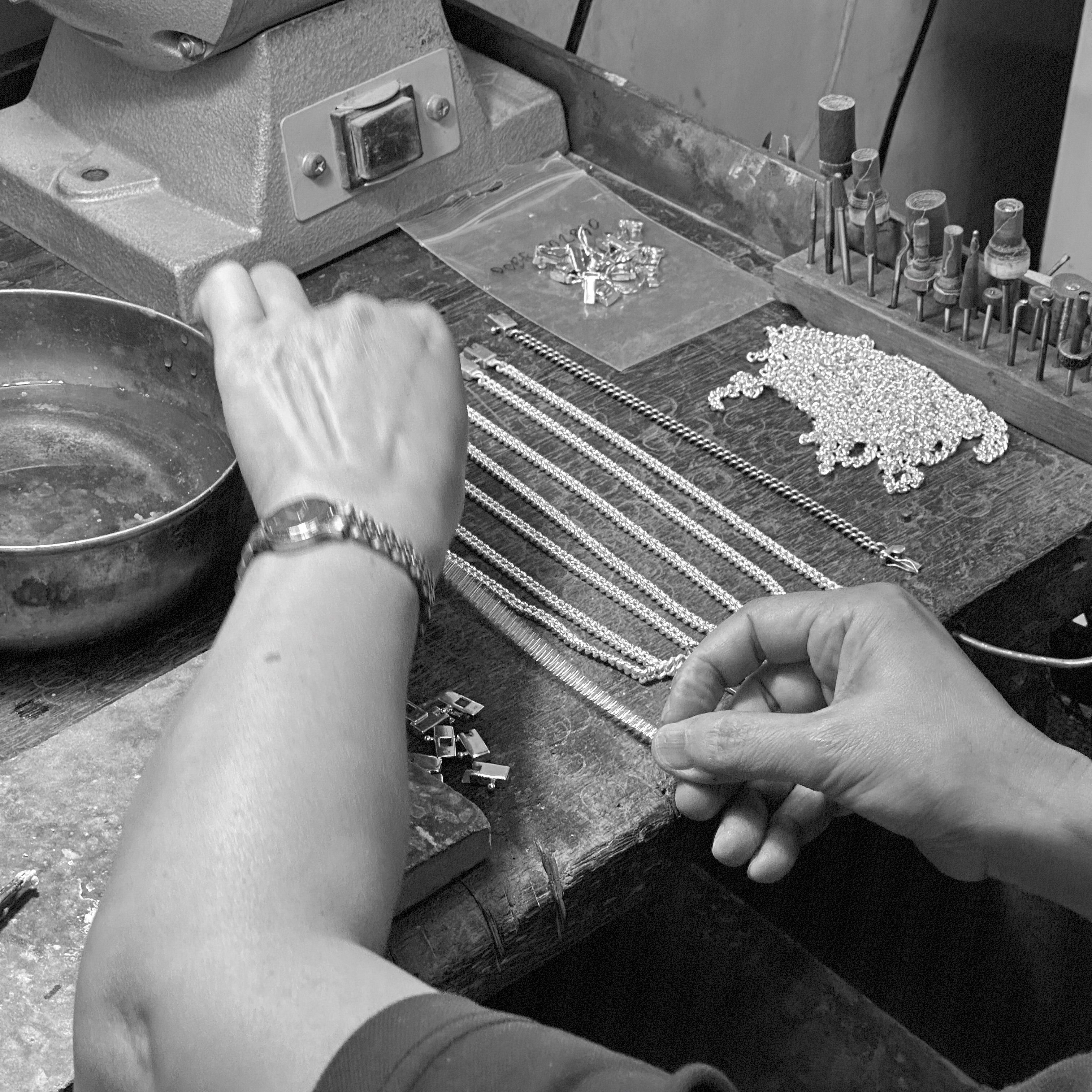 Every design is carved, soldered, hammered and burnished by hands that have been honed over years and even decades. One at a time. Small batches. No mass production with machines. We choose ethically sourced materials and mindful packaging, and here, in our Casa, we take the utmost pride in how the soul takes form in the metal. We build what lasts, not what’s disposable.