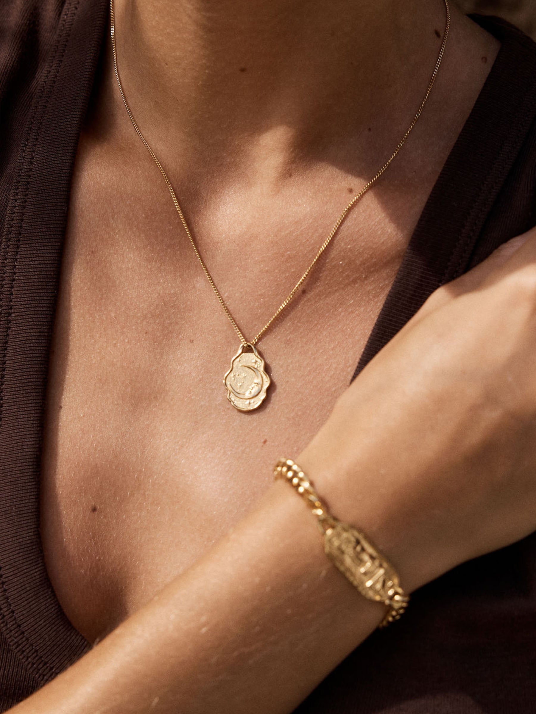 Soluna is a dialogue between sun and moon, energy and reflection, cast in 18K gold vermeil. By day or night, the pendant may gently flip - its movement a quiet reminder that balance is alive, not fixed. The sun radiates life and light, the moon invites introspection and intuition. Together, they orbit your collarbone, witnessing your story and the rhythms you live, even when no one else sees.